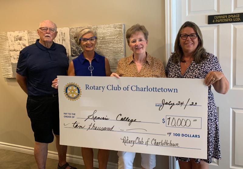 Presentation photo: Steve Connolly, Vice-President, Seniors College of PEI and Chair, Marketing and Communications; Corrine Hendricken-Eldershaw, Past President, Rotary Club of Charlottetown; Shirley Pierce, President, Seniors College of PEI; Tory Kennedy, Provincial Coordinator, Seniors College of PEI.